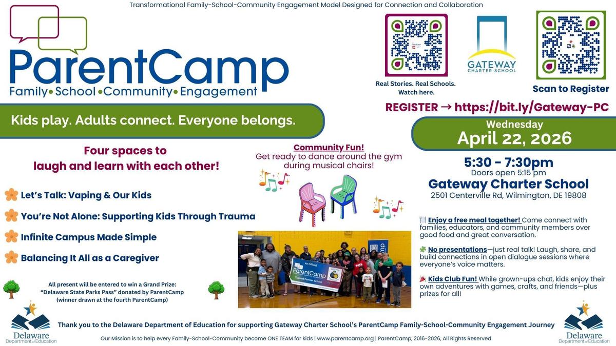 Thank you to the Delaware Department of Education for supporting this ParentCamp and helping strengthen Family-School-Community engagement across Delaware.